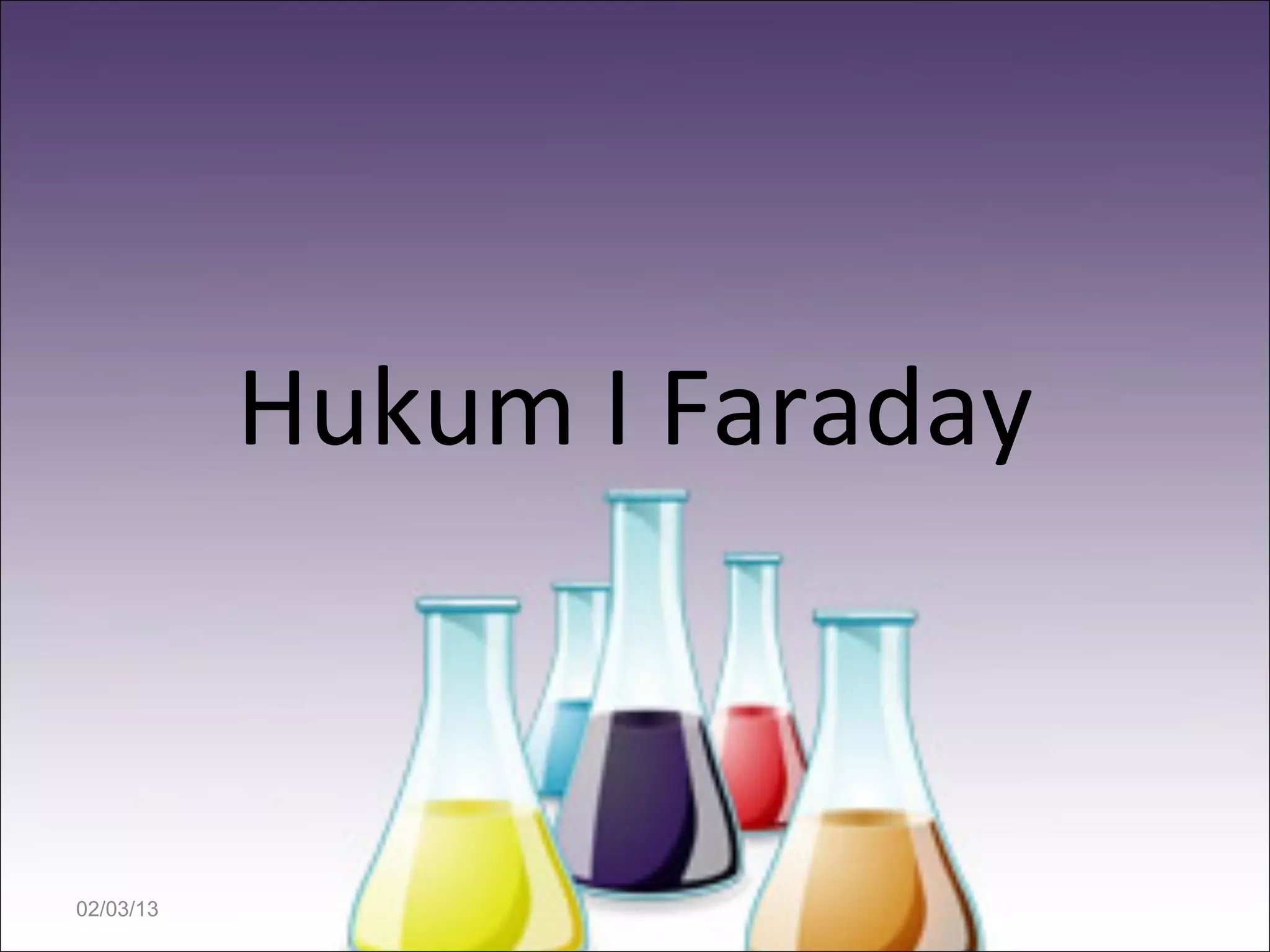 Hukum I Faraday menyatakan bahwa jumlah massa zat yang diendapkan pada elektroda sebanding dengan jumlah muatan listrik yang dialirkan melalui larutan elektrolit. Secara matematis, massa zat yang dibebaskan atau diendapkan oleh arus listrik sebanding dengan berat ekivalen zat tersebut dikalikan kuat arus dan waktu. Hukum ini kemudian diterapkan dalam proses elektrolisis untuk memproduksi logam.