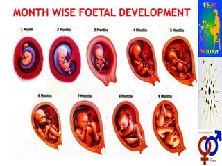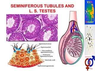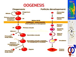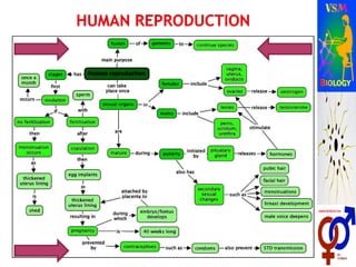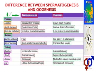 The document describes human reproductive systems and processes. It discusses that humans are viviparous and have two distinct sexes. It then describes the male reproductive system in detail, including internal structures like testes, ducts and glands, and external structures like penis. Key processes in the male like spermatogenesis and roles of hormones are explained. Similarly, the female reproductive system and structures like ovaries, uterus and mammary glands are outlined. Oogenesis and roles of hormones in female are also covered. The stages of human reproduction from fertilization to birth are briefly listed.