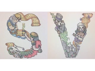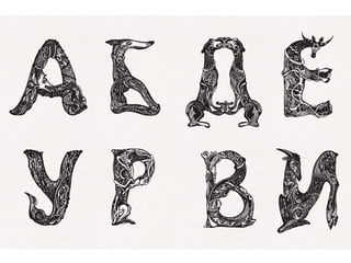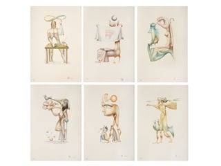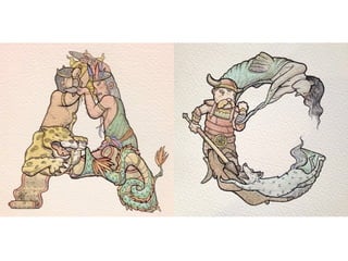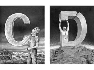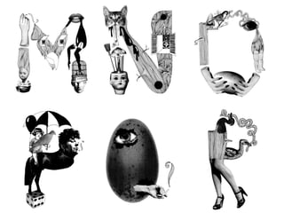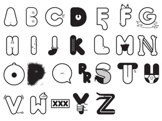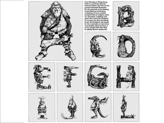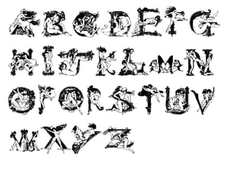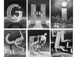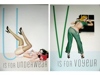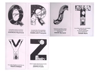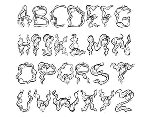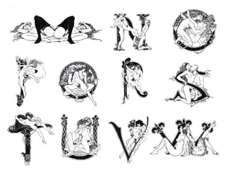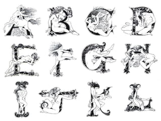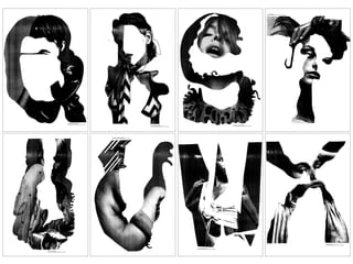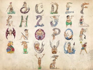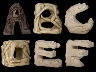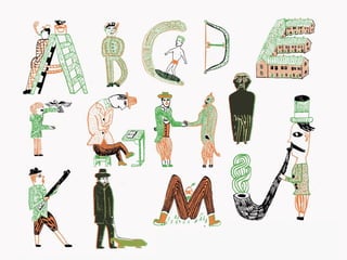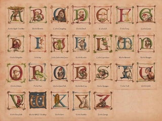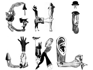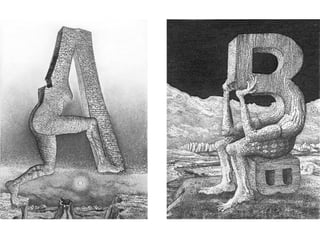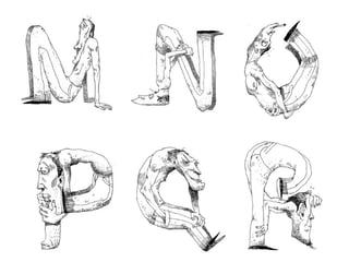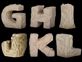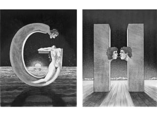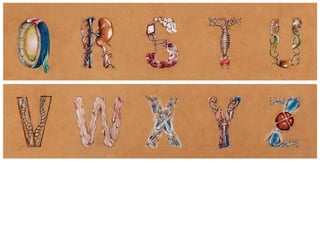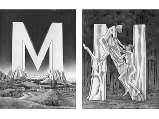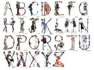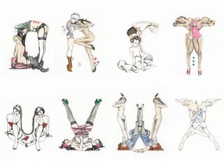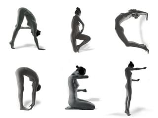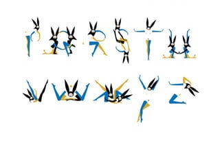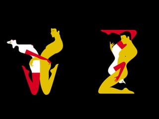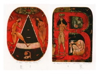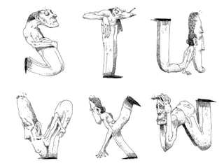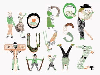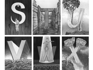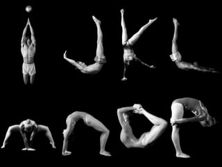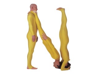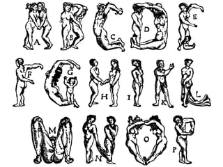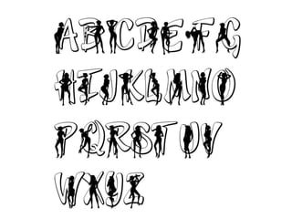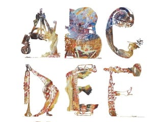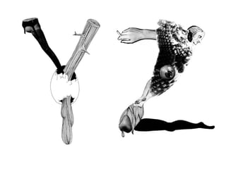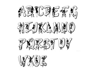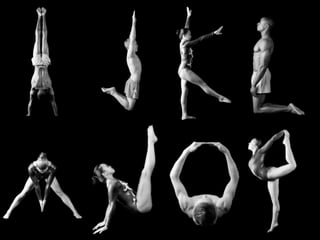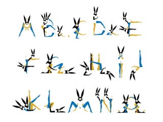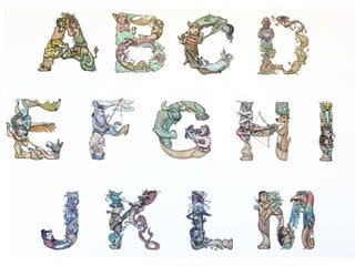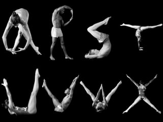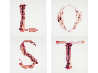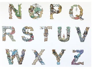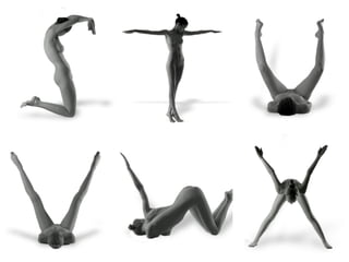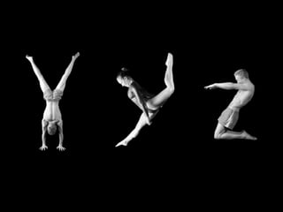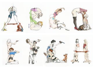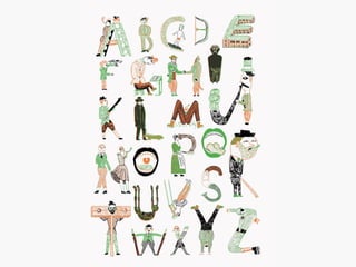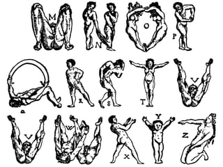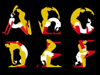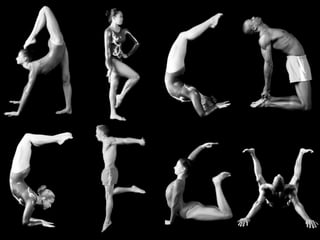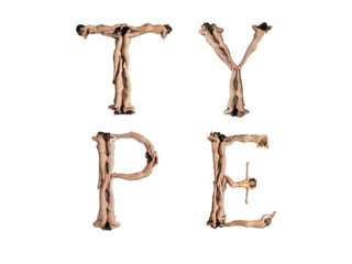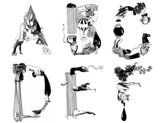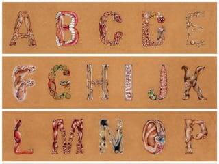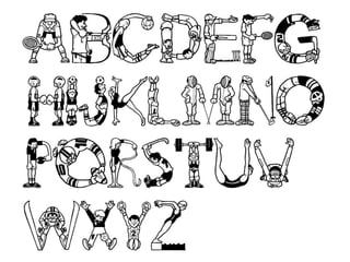 This document lists and provides details on 26 human alphabet artworks created between 1970 and 2015. Some of the works include the Pilobolus Human Alphabet by John Kane (2005), The Naked Ladies Alphabet by Anthon Beeke (1970), Body Type by Howard Schatz (1996), and Typo Humaine by Martin Tremblay (2013). The list includes the title, artist, date, brief description, and links for many of the alphabet artworks.