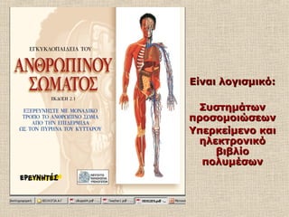 το εκπαιδευτικό λογισμικό «Εγκυκλοπαίδεια του Ανθρώπινου Σώματος»,