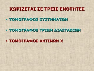 • ΤΟΜΟΓΡΑΦΟΣ ΤΡΙΩΝ ΔΙΑΣΤΑΣΕΩΝΤΟΜΟΓΡΑΦΟΣ ΤΡΙΩΝ ΔΙΑΣΤΑΣΕΩΝ