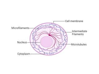 This document summarizes the structure and functions of the cell and its organelles. It begins by stating that all living things are composed of cells, and that cells are the basic structural and functional units of living bodies. It then describes the general characteristics of cells and the structures of the cell, including the cell membrane, cytoplasm, and nucleus. Specific organelles like the endoplasmic reticulum, Golgi apparatus, lysosomes, mitochondria and ribosomes are then explained in more detail. The functions of these various cell structures are also outlined.