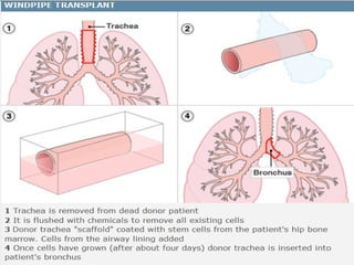 The document discusses human cell types, focusing on specialized cells that arise from stem cells during development, and outlines types of stem cells including embryonic, adult, induced pluripotent, and germline cells. It highlights the significance of stem cell research in understanding diseases, developing therapies, and addressing ethical concerns. Additionally, it contrasts cancer cells with normal cells, exploring their characteristics and treatments.