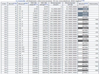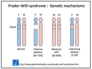 This document provides information about human chromosome 15. It discusses that chromosome 15 is an acrocentric chromosome that represents about 3% of human genetic material. It contains over 900 genes, including some linked to diseases. The sequence of the euchromatic region has been fully mapped. Conditions like Prader-Willi syndrome and Angelman syndrome are caused by deletions or defects involving imprinted genes on chromosome 15.