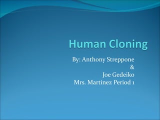 3. The document outlines arguments for and against human cloning, noting religious and ethical concerns as well as risks of developmental defects.