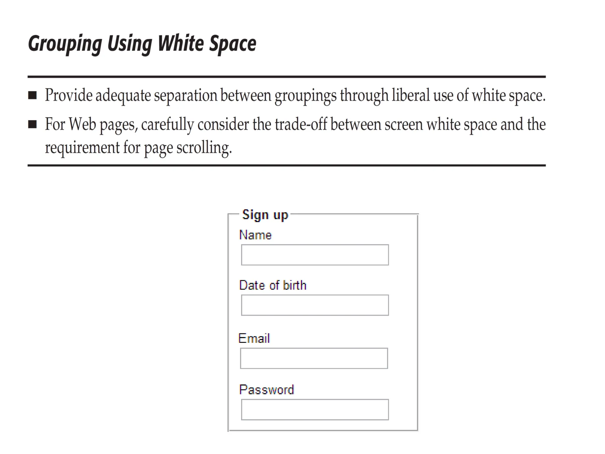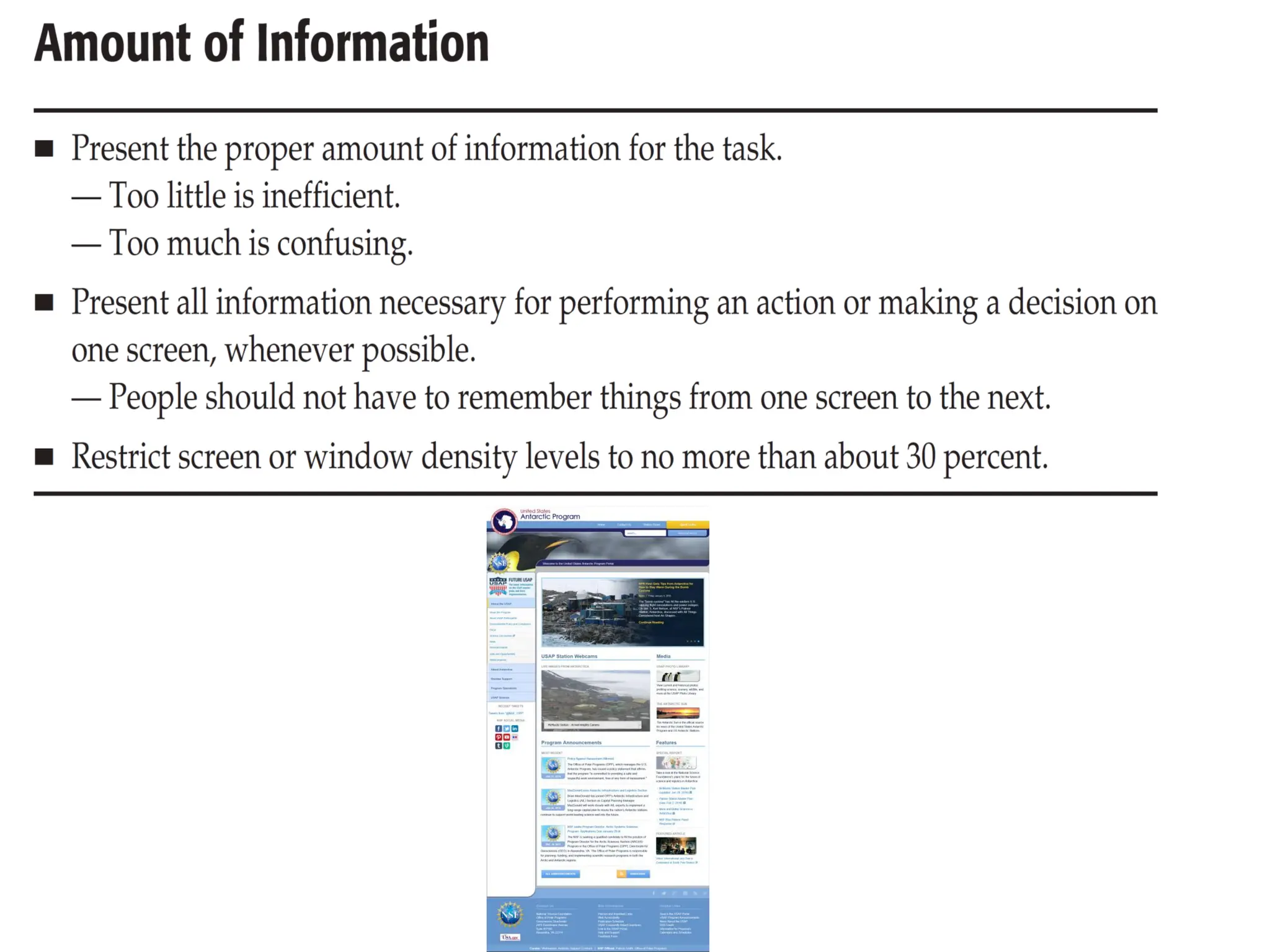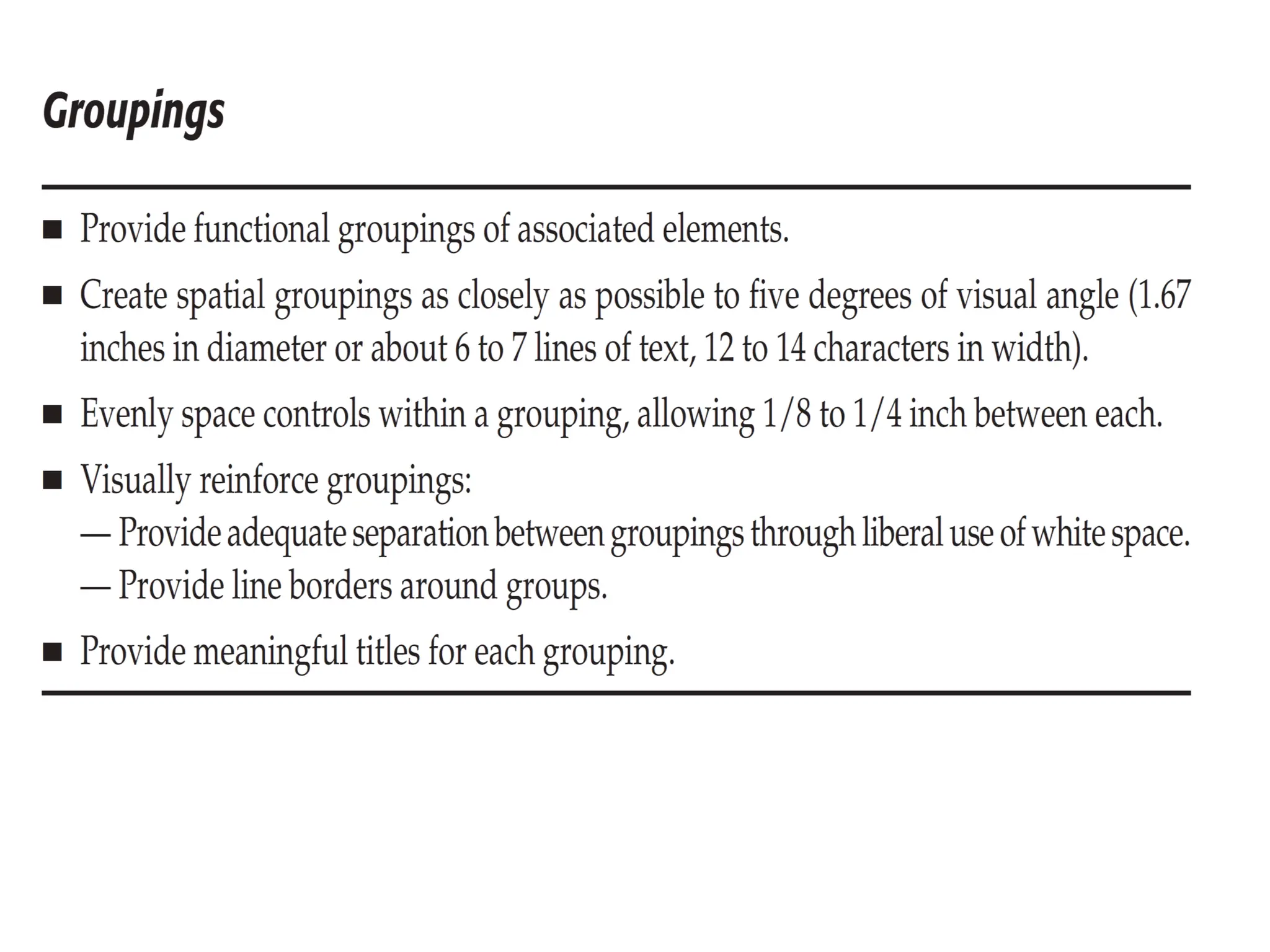 Marcus (1992) describes certain proportions as aesthetically pleasing, including ratios of 1:1.29 for letter paper, 1:1.33 for television screens, and between 1:1.33 to 1:1.50 for CRT screens. The document recommends considering these aesthetically pleasing proportions when designing major screen components such as window sizes, web page sizes, graphics, and groupings of data or text.