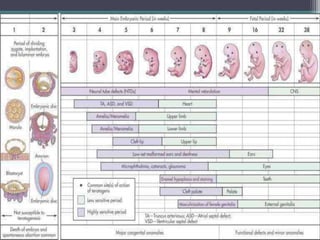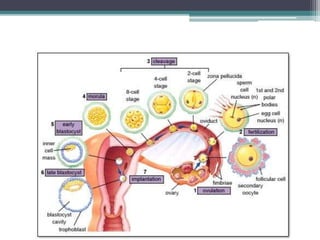 2) The zygote undergoes cell division and develops into an embryo over a series of stages. By the end of the first trimester, all major organ systems have formed.