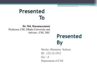 This presentation discusses human face detection using MatLab. It begins with defining face detection as determining the location and size of human faces in images. There are two types of face detection: in static images and real-time from video. Real-time detection is simpler than static images due to human movement. Face detection in images refers to detecting faces in a single image. The presentation demonstrates the process of reading an image, detecting faces using an algorithm object, annotating the faces on the image, and displaying the number of detected faces. It provides code and an example output image with detected faces. Limitations are also noted.