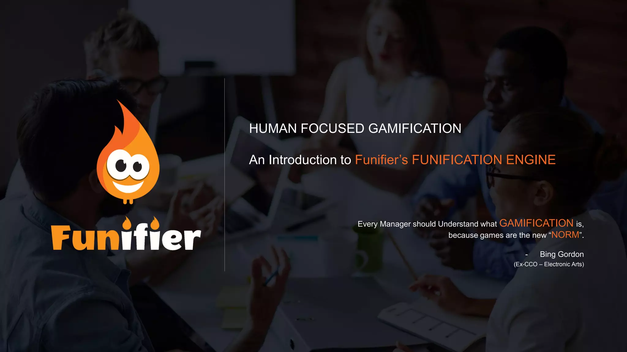 The document introduces Funifier’s funification engine, emphasizing the integration of gamification in various business contexts to enhance user engagement and achieve critical business goals. It highlights the importance of understanding target audiences, defining desired actions, and using game mechanics to motivate participation and interaction. Additionally, it presents case studies illustrating successful applications of gamification across diverse sectors, advocating for its adoption as a strategic tool for companies.