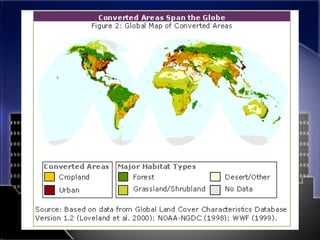 The document discusses the major increases in human population and consumption that are putting significant stress on the environment. The growth of the human population from millions to billions in just a few centuries due to technology and medicine is depleting resources and damaging ecosystems. Continued population and economic growth will further degrade the environment unless new technologies can be developed to mitigate these problems. Engineers have a key role to play in measuring environmental impacts, creating sustainable technologies, and helping develop solutions to address the challenges of supporting the human population while protecting the planet.