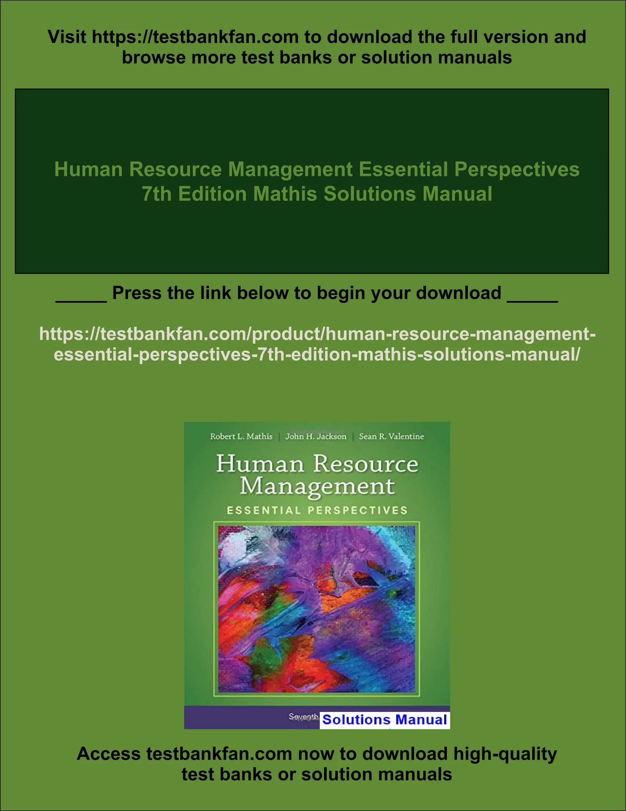 Human Resource Management Essential Perspectives 7th Edition Mathis Solutions Manual