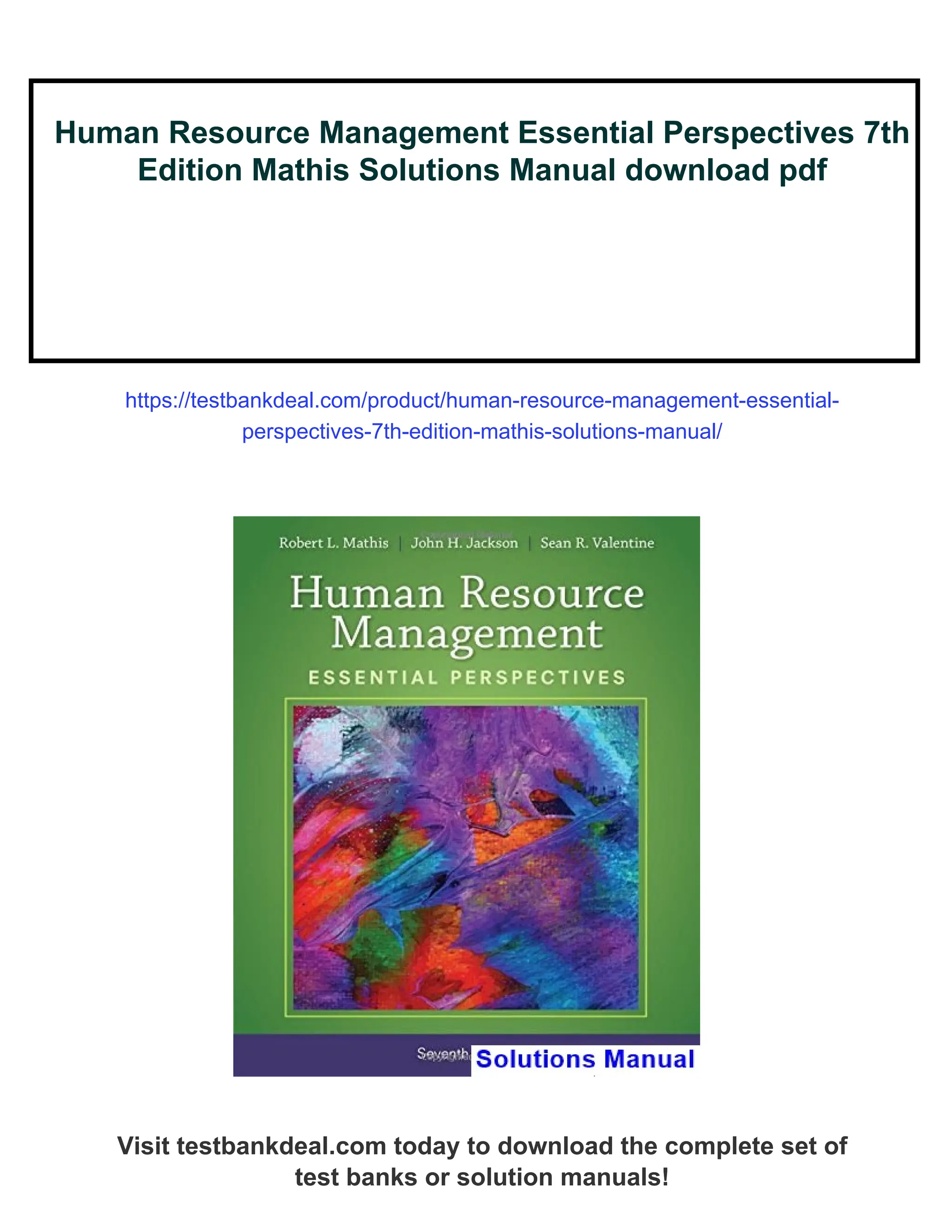 Human Resource ManagementEssential Perspectives 7th Edition Mathis Solutions Manual download pdf https://testbankdeal.com/product/human-resource-management-essential- perspectives-7th-edition-mathis-solutions-manual/ Visit testbankdeal.com today to download the complete set of test banks or solution manuals!