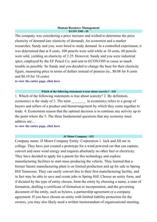 The document discusses several topics related to business and economics including human resource management, price elasticity, forming an LLC called JJ Motor Company to manufacture wind-powered vehicles, evaluating communication tools for internal stakeholders, personal finance topics like allowances and bill paying, consumption and capital budgeting, imposing a pizza tax, a case study on workplace safety, arguments for and against the death penalty, responsibilities of pharmaceutical companies, and analyzing organizational behavior.