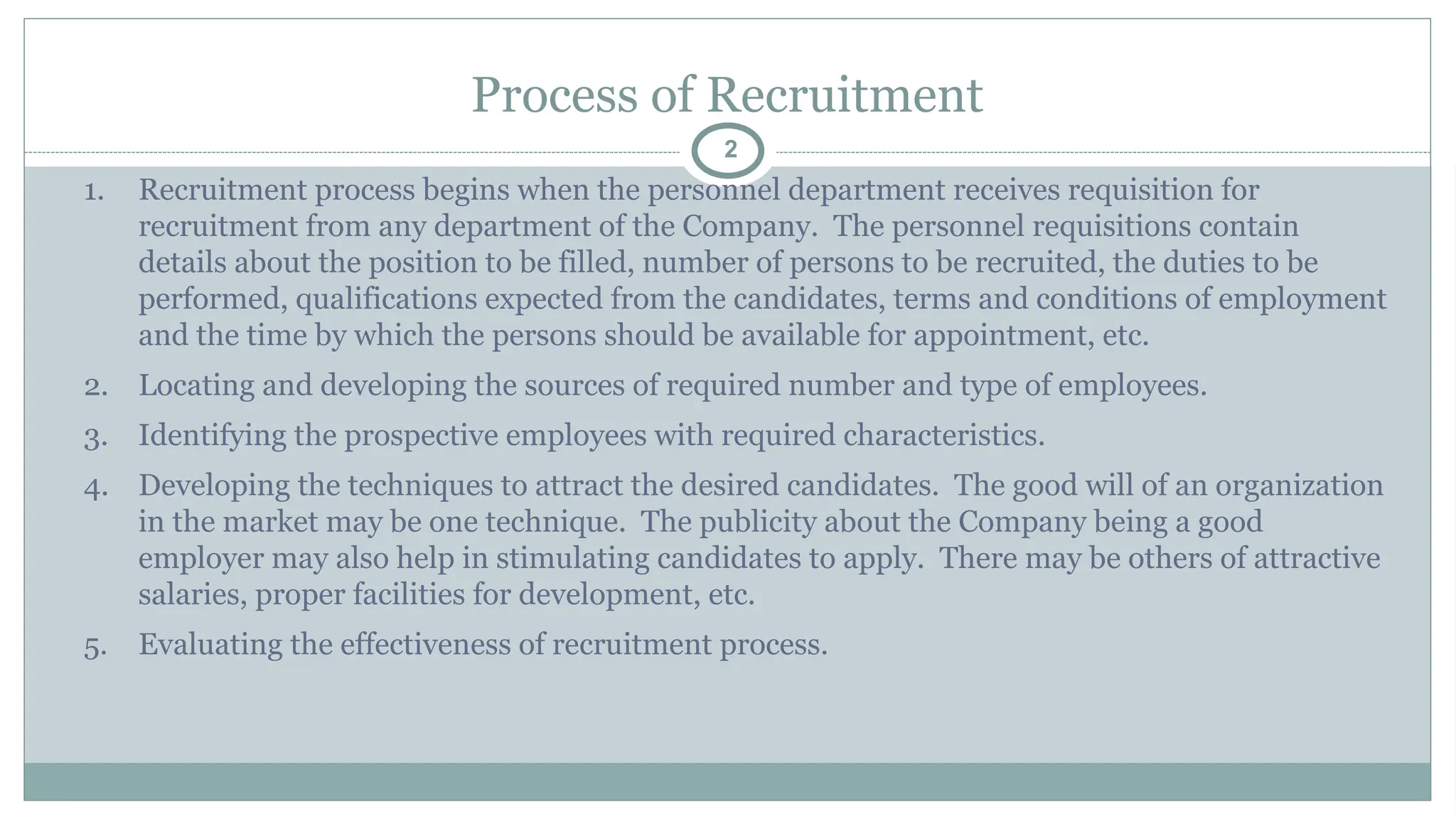Recruitment is the process of finding and attracting capable applicants for employment. The process