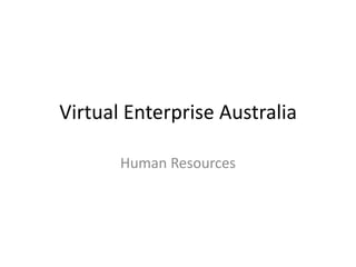Virtual Enterprise Australia provides human resources services. It likely offers staffing, recruitment, payroll, and benefits administration. The document references Virtual Enterprise Australia's human resources department or services.
