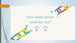 The document highlights global human trafficking statistics and categories, revealing that approximately 20.9 million individuals are victims, and detailing the classifications of countries based on their efforts to combat trafficking. It provides specific examples of trafficking situations in countries such as Bangladesh, China, Ethiopia, and Mexico, illustrating the various forms of exploitation, including forced labor and sex trafficking. The document also mentions the implications of the Trafficking Victims Protection Act and the importance of awareness and action against human trafficking.