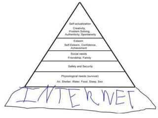 The document provides an overview of Abraham Maslow's theory of human motivation known as the hierarchy of needs. It discusses Maslow's biography and influences, and describes the five levels of needs in his hierarchy: physiological, safety, love and belonging, esteem, and self-actualization. Criticisms of Maslow's theory are noted, and suggestions for applying the theory in education are provided, such as meeting basic needs, fostering belonging and esteem, encouraging knowledge and aesthetics, and allowing for self-actualization.