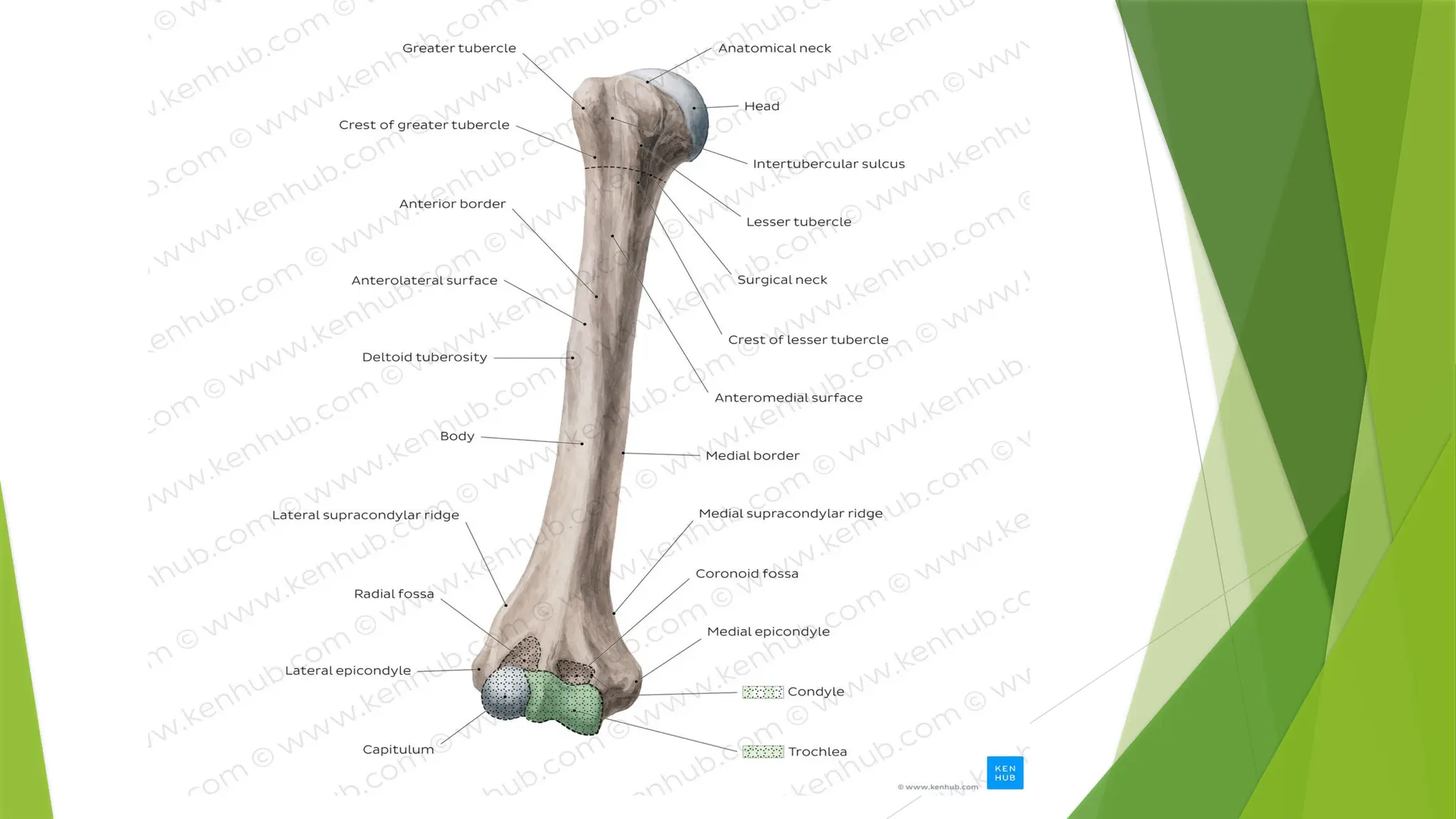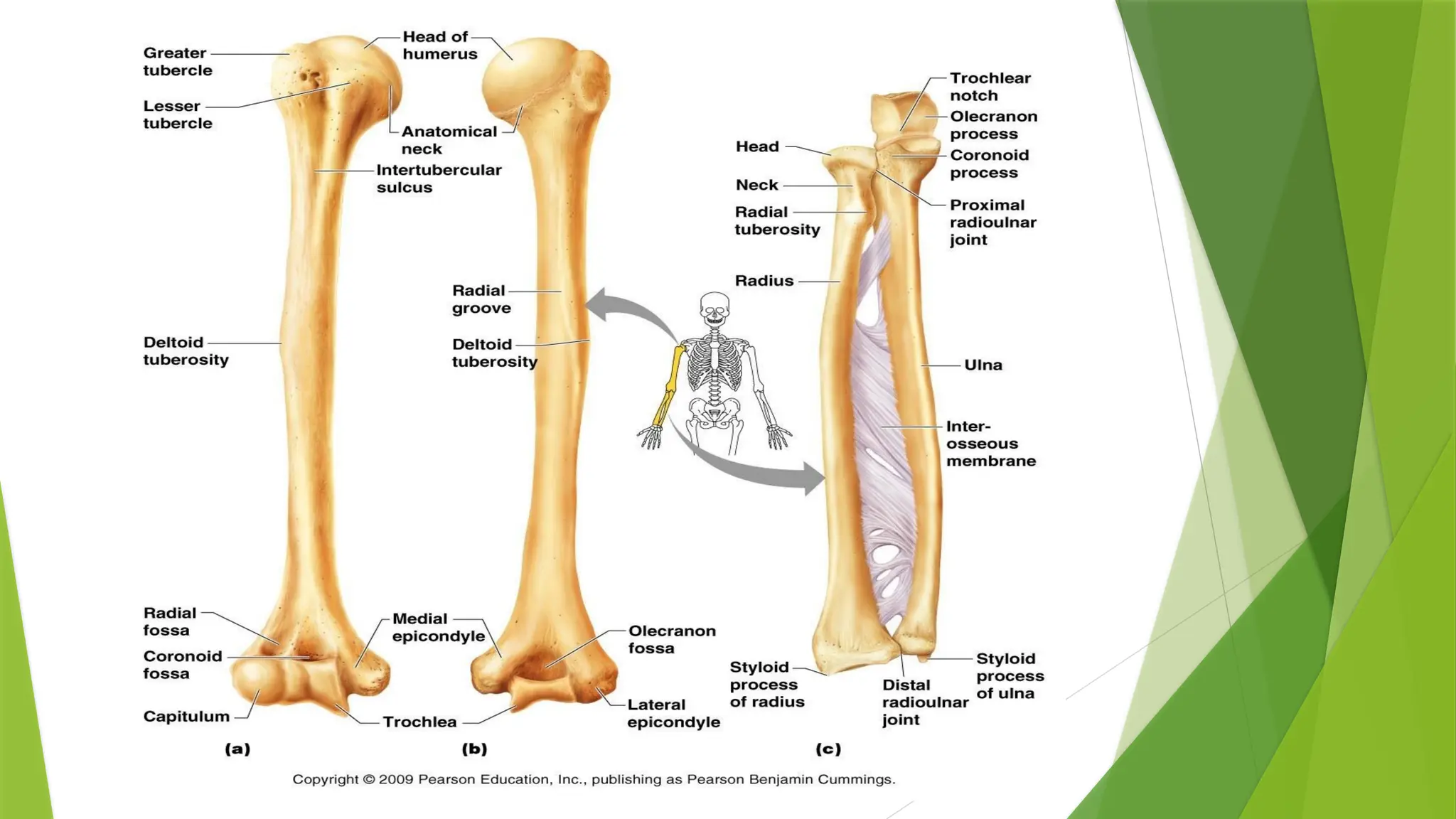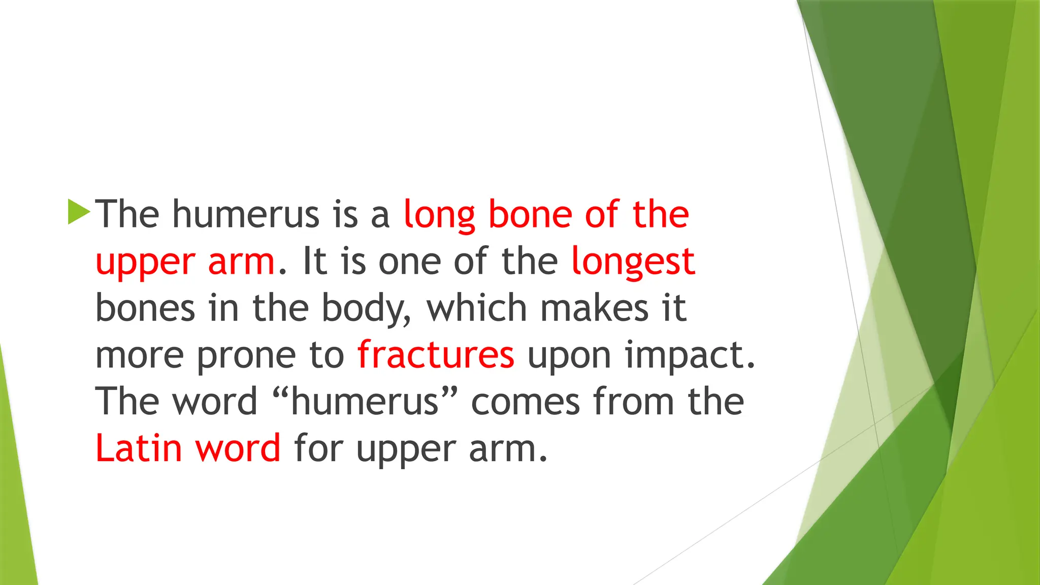 The bodyor shaft of the humerus is triangular to cylindrical in cut