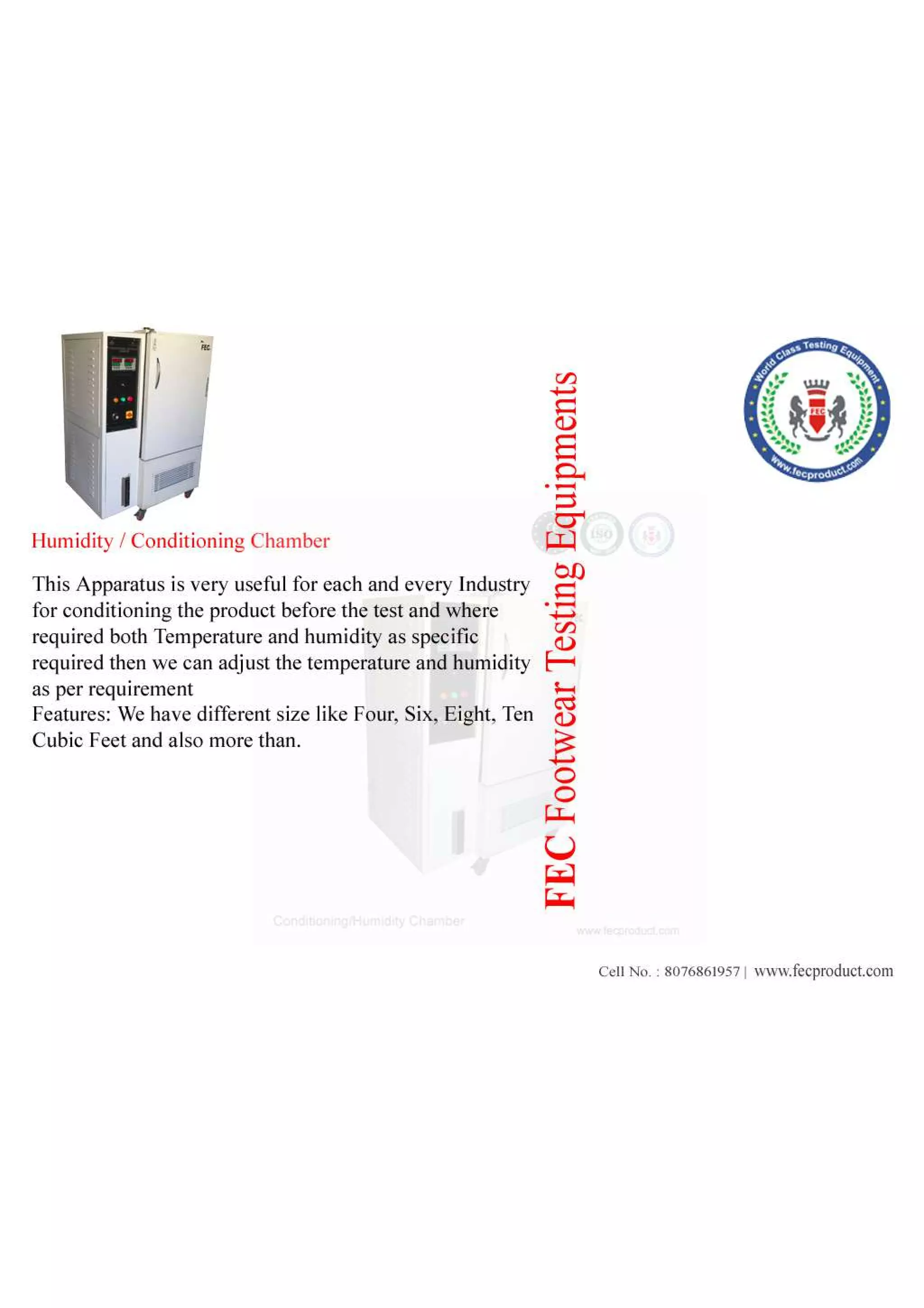 This Apparatus is very useful for each and every Industry for conditioning the product before the test and where required both Temperature and humidity as specific required then we can adjust the temperature and humidity as per requirement