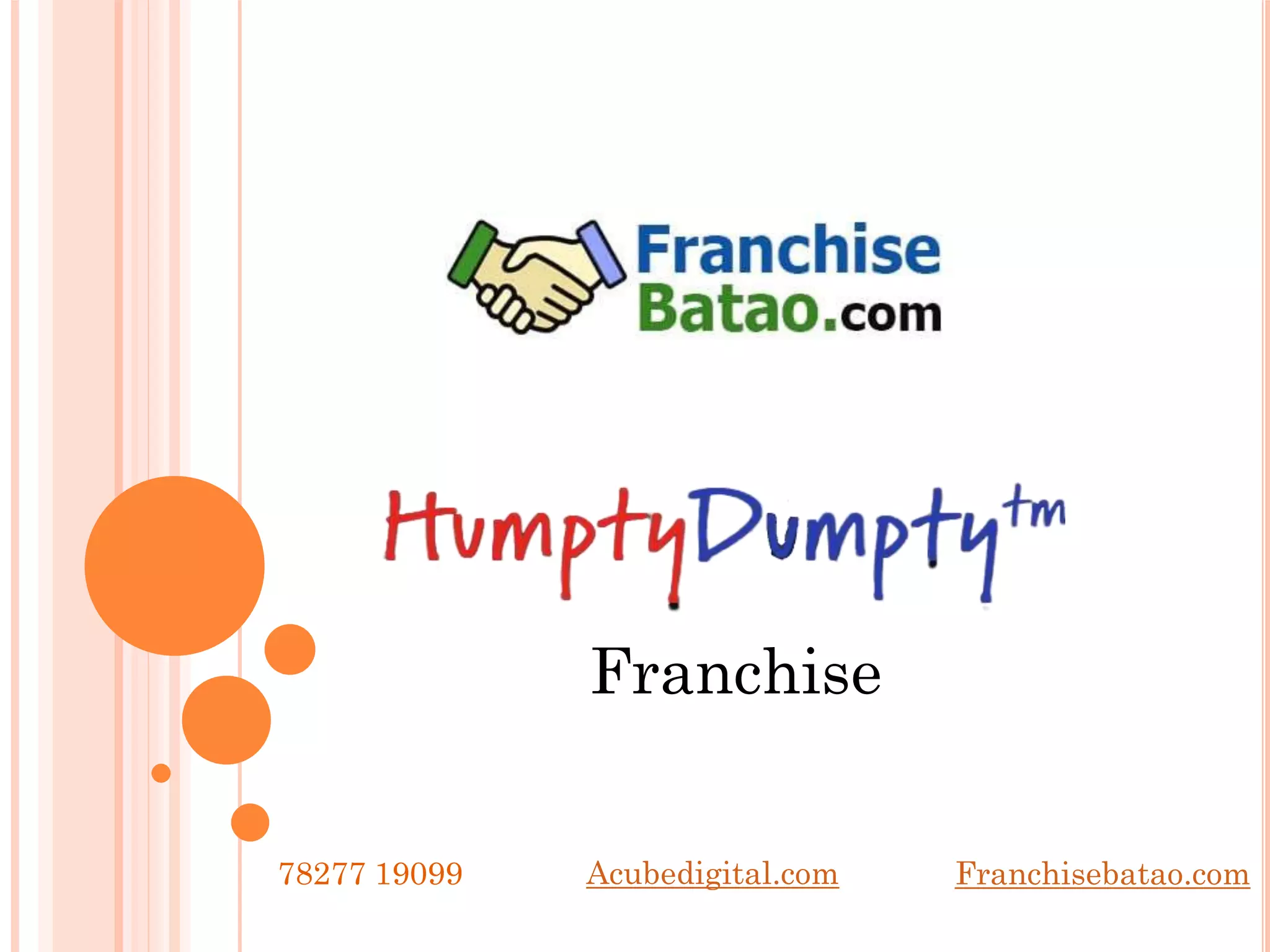Humpty Dumpty is a franchise brand founded in 2014 that deals in baby clothes, footwear, toys, gear, nursing products, bath products, health and safety items, and accessories. It has franchises located in several Indian cities and offers three models - Micro, Mini, and Mega - requiring different amounts of space and investment. The Micro franchise requires 250-350 square feet and a 10-12 lakh investment plus 1.5 lakh franchise fee, while the Mega franchise requires approximately 1000 square feet and a 30-35 lakh investment plus the same franchise fee. Interested parties are instructed to call one of the provided phone numbers for more information.