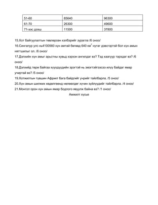 14.Дараах мэдээллээр хүн амын суварга бүтээ /20 оноо/