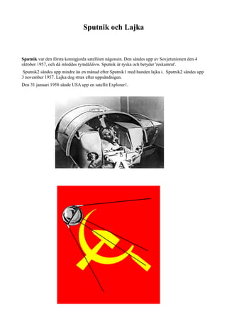 Sputnik2 sändes upp mindre än en månad efter Sputnik1 med hunden lajka i. Sputnik2 sändes upp