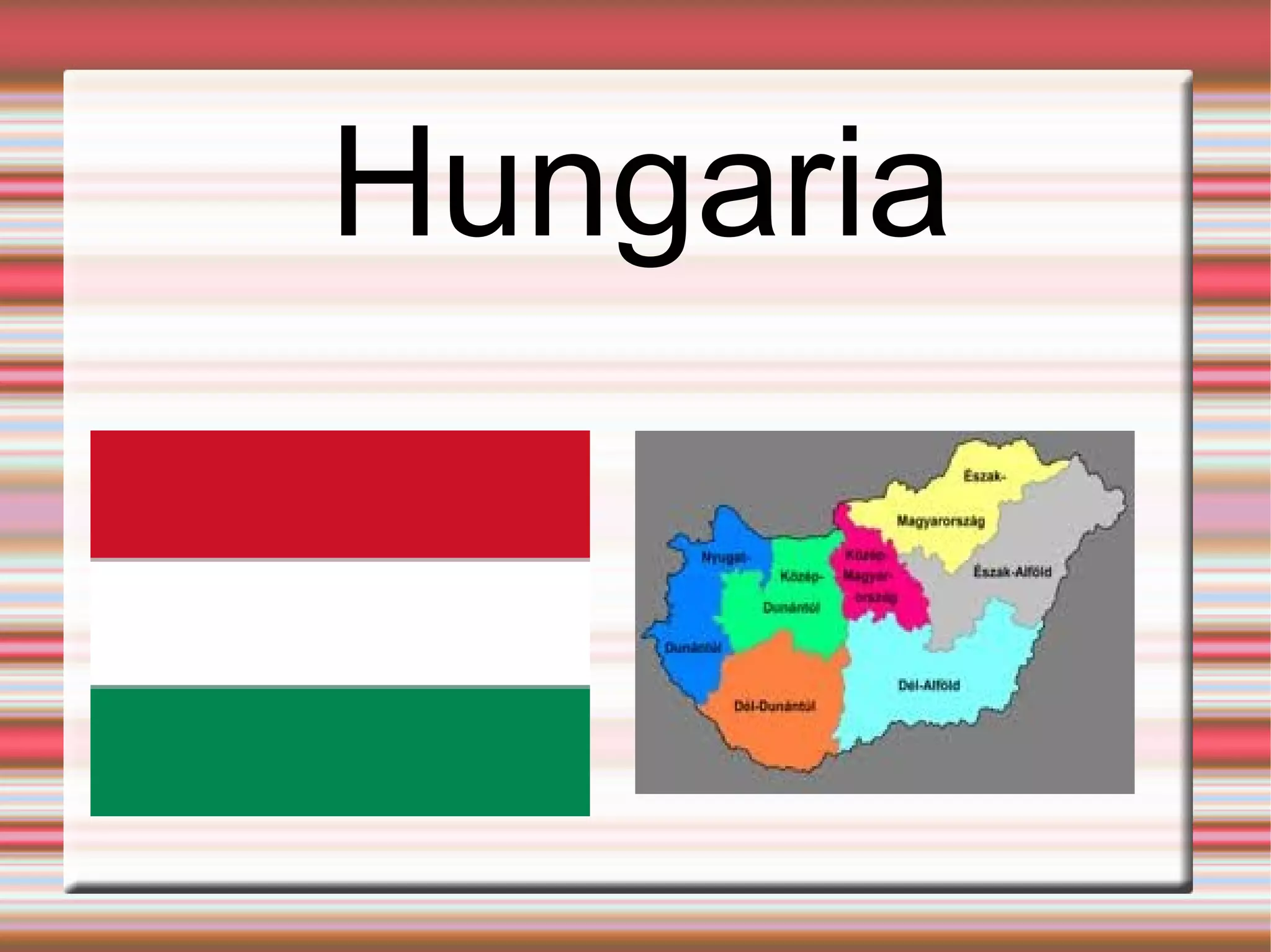 Hungariaren probintziak 7probintziak ditu Hungaria Hungariaren hiriburua Budapest da, Budapest ere bai Hungariako hiri nagusia da. Herrialdeko osoko biztanleriaren %20 bizi da Budapest, 2005ean 1,7 miloi ingurua. Hiria Danubiok zeharkatzen du