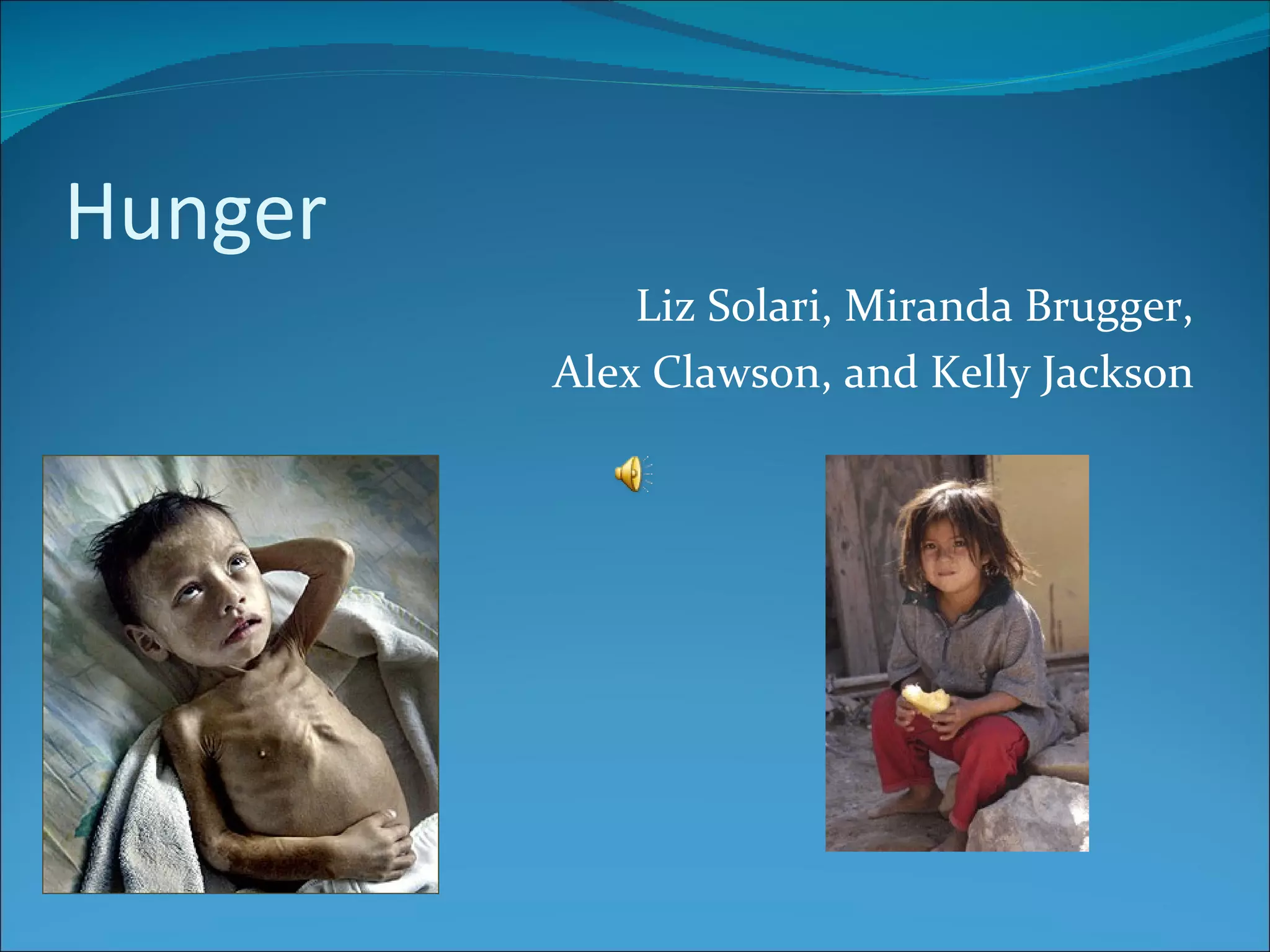 The document discusses facts and statistics about global hunger. It states that 6 million children under 5 die from hunger each year. It also provides statistics on food insecurity in the US and poverty levels worldwide. Over 800 million people in developing countries are undernourished and each year 9 million people die from malnutrition, including 5 million children. The document ends by providing resources on organizations and videos related to addressing hunger.