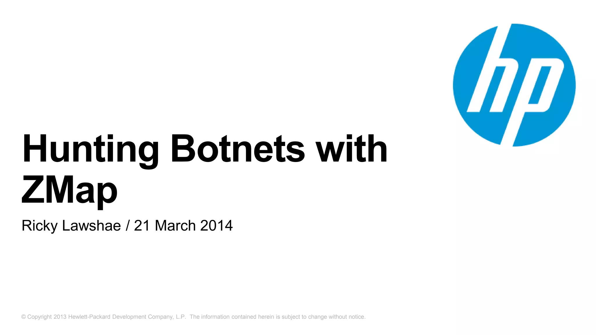 The document discusses internet scanning for botnets, highlighting tools like ZMap and Project Sonar, which are used for identifying compromised hosts and malicious activities online. It outlines a method for scanning botnets, notably the Zero Access botnet, detailing its operational mechanics and offering infection statistics across various countries and ISPs. The author concludes with suggestions for future research, including tracking infection rates and the potential for improving detection methods.