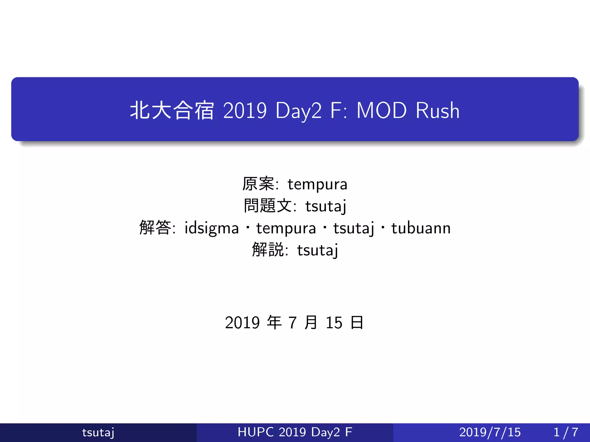 tsutaj HUPC 2019 Day2 F 2019/7/15 4 / 7