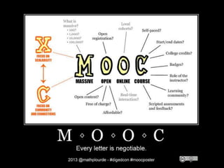 Ref. MOOCs as disruptive technologies: strategies for enhancing the learner experience and quality of MOOCs, Conole G 2013)