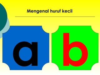 Dokumen ini berfokus pada pengenalan huruf kecil dari a hingga z. Setiap huruf kecil disebutkan secara berurutan. Ini merupakan panduan untuk memahami huruf kecil dalam alfabet.