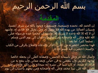 يتحدث المستند عن فضل ذكر الله وأهمية الأذكار المستمدة من الكتاب والسنة، مشيرًا إلى آثار الذكر على حياة المسلم. كما يقدم مجموعة من الأدعية والأذكار المختلفة التي يُستحب ترديدها في مناسبات متنوعة. يهدف الوثيقة إلى تعزيز الصلة بالله وتشجيع المسلمين على ممارسات الذكر المستمرة.