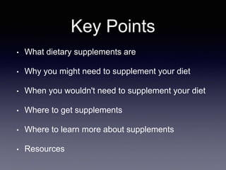 - It's important to learn about supplements from reputable sources like government websites due to the variety of information available.