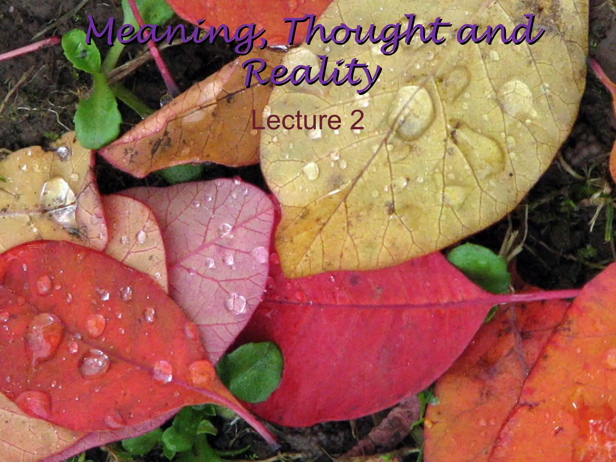 The document discusses reference and meaning in language. It defines reference as the relationship between linguistic expressions and real world entities. Reference can be referring, where expressions pick out entities, or non-referring. Referring expressions include nouns and names, while non-referring includes words like "very" and "maybe". Reference can also be constant, where an expression always refers to the same entity, or variable, where context determines the referent. Meaning in language can be viewed through either a referential approach, where meaning comes from relating expressions to reality, or a representational approach, where meaning comes from reflecting conceptual structures.