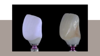 Titanium implant abutments are common due to their strength and biocompatibility, but they can compromise aesthetics, particularly in patients with thin mucosa. The introduction of hybrid abutments, combining titanium inserts with ceramics, aims to enhance aesthetics while maintaining mechanical integrity and minimizing complications, as shown by various studies. The document highlights advancements in materials and techniques, emphasizing the need for further clinical evaluations of hybrid abutments in implant restorations.