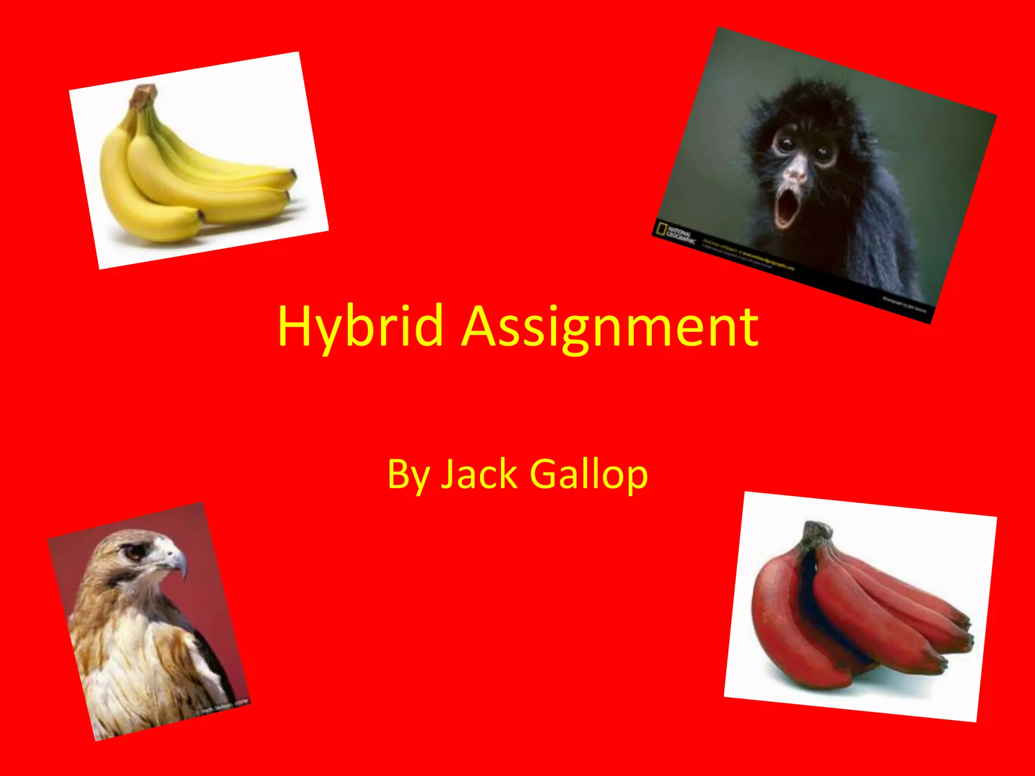 The document describes a hybrid banana called the Rellow Banana that combines the vitamin C from red bananas and the sweet taste of yellow bananas, and can be refrigerated for up to 30 days. It also mentions a hypothetical hybrid called a "Hankey" that would result from mating a chimpanzee with a hawk, giving it the arms of a monkey for climbing and full hawk wings to fly. This new animal is proposed to be able to clean homes, provide entertainment, and deliver letters by flying.