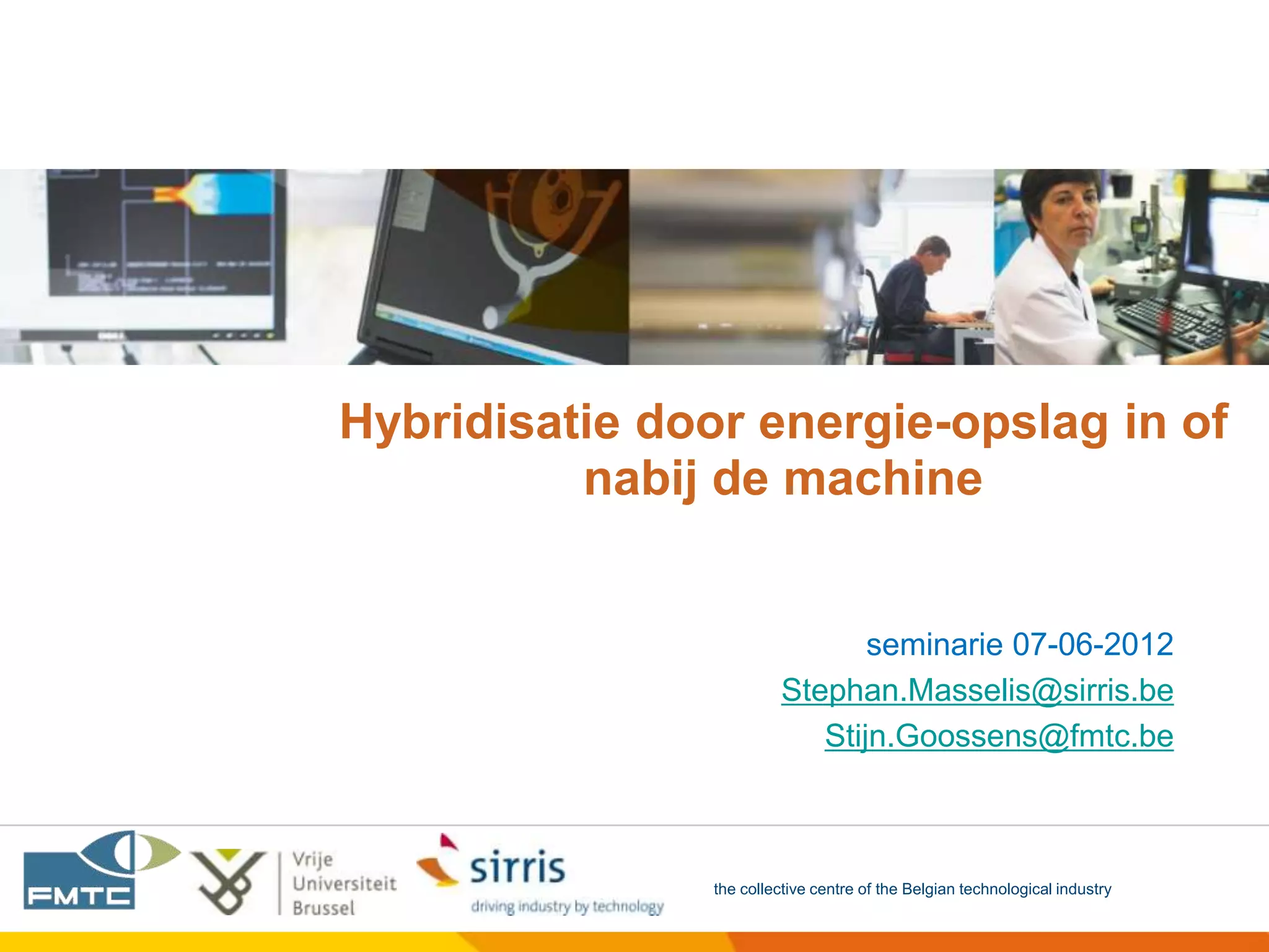 This document summarizes different energy storage technologies for hybridization, including flywheels, hydraulic energy storage, and batteries. It provides details on kinetic energy storage using flywheels, including the basics of flywheel energy storage and examples of applications in vehicles like Formula 1 cars. It also discusses hydraulic energy storage, including the basic operating principles and examples of applications in vehicles and UPS systems. Advantages and disadvantages of both flywheel and hydraulic energy storage technologies are presented.