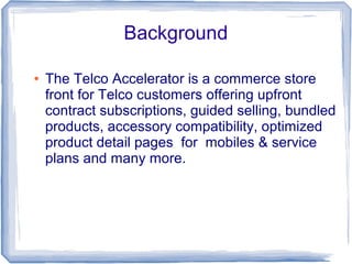 This document provides instructions for installing Hybris Telco Accelerator on an Amazon EC2 instance. It outlines the prerequisites, including having an EC2 instance and SSH access. The steps include downloading the Hybris software, unzipping it, installing Java if needed, building the configuration using Ant, verifying the build, backing up default configurations, copying sample Telco configurations, and starting the Hybris server. Useful commands are also provided for finding files, installing editors, tailing logs, rebooting the VM, and checking system resources.