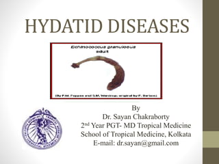 An 26-year-old female presented with abdominal pain, hepatomegaly, and fever. Imaging revealed hepatic cysts, with differential diagnoses including cystic echinococcosis. Cystic echinococcosis is caused by the tapeworm Echinococcus granulosus and is endemic in pastoral communities. It involves the growth of cysts, most commonly in the liver and lungs, which can cause complications as they increase in size. Diagnosis involves serology, imaging, and cyst puncture. Treatment options include benzimidazole medication, percutaneous cyst sterilization, surgery, or observation of asymptomatic cysts. Prevention requires reducing transmission between definitive canine hosts and intermediate livestock hosts.