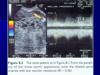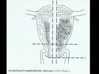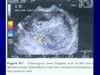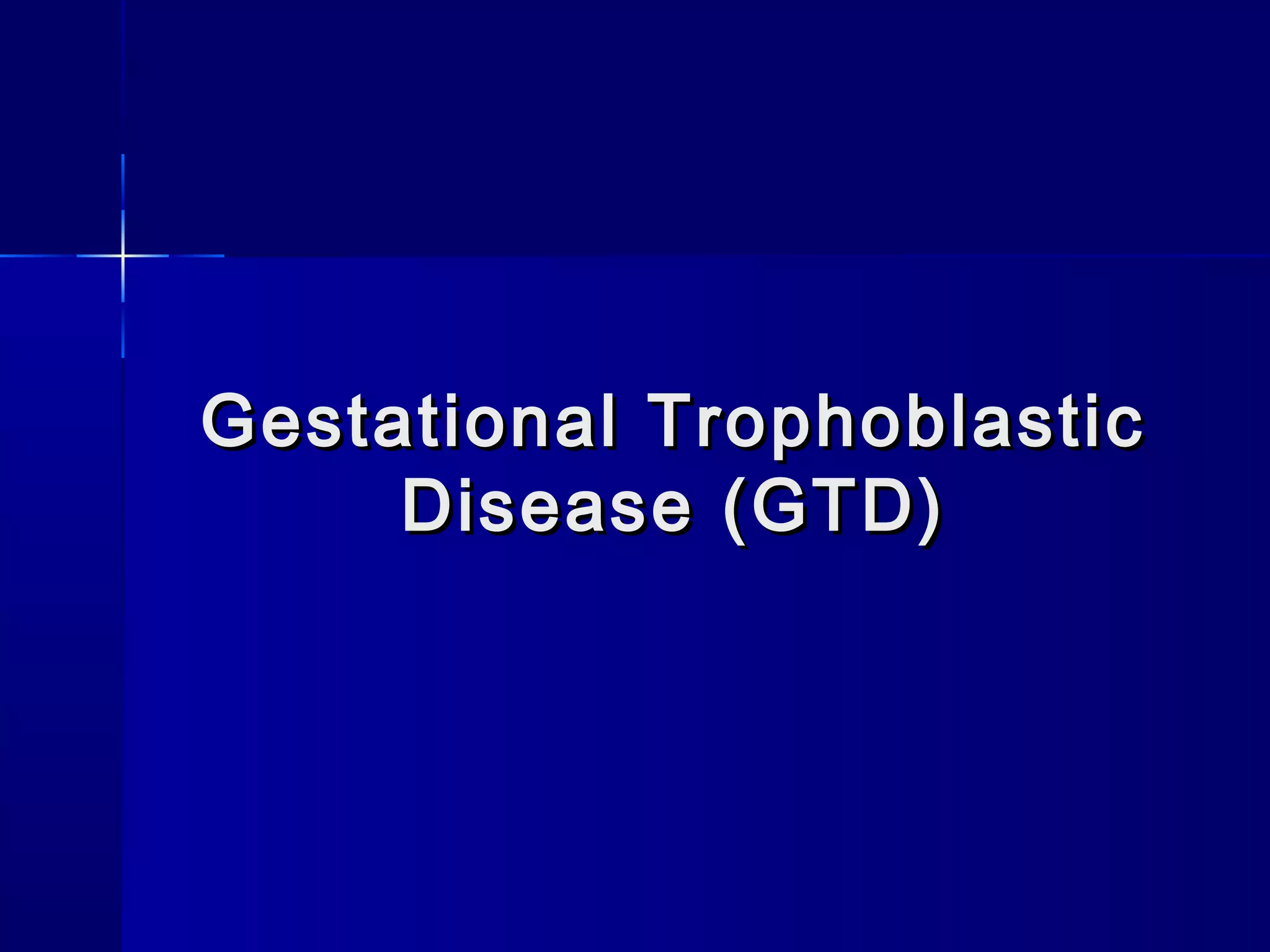 This document discusses gestational trophoblastic disease (GTD), including types like hydatidiform mole. It provides details on: