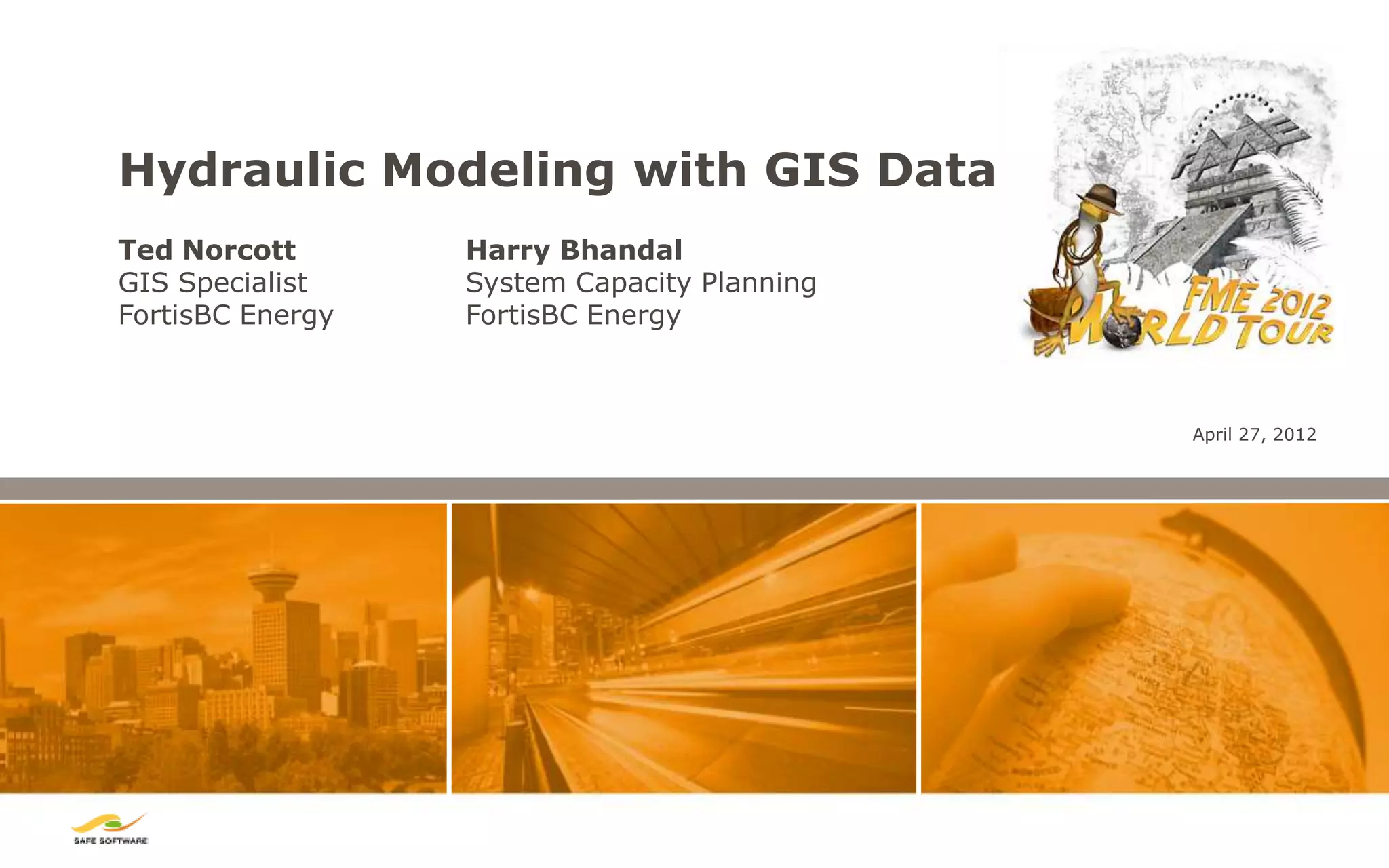 The document outlines FortisBC's hydraulic modeling efforts using GIS data for system capacity planning, detailing the necessity of software like Synergee and Gregg for pipeline management. It describes the process of data extraction and merging, which incorporates customer information with pipeline data to streamline operations and enhance planning efficiency. Future plans include automating these processes to facilitate self-service options for system planners.