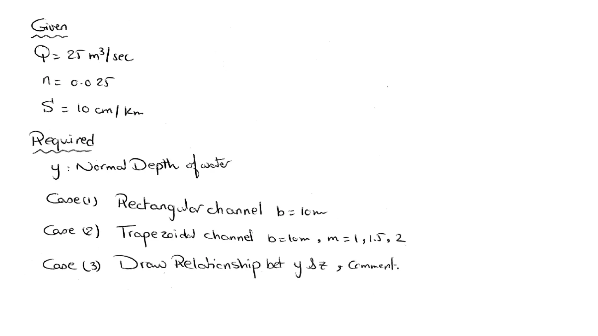 1) Using Manning's equation and the given Froude number, relationships are developed between flow rate, depth, and other variables.