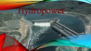 Hydropower harnesses the kinetic energy of moving water to generate electricity. It has been used for centuries to power mills and factories. Modern hydropower plants first emerged in the late 19th century and have since become a major source of renewable energy worldwide. Hydropower is classified based on factors like plant size and head. Key components include dams, reservoirs, penstocks, turbines, generators, and transformers. While hydropower has significant advantages as a clean energy source, new plants also face environmental challenges and changing water availability due to climate change. Many regions still have potential to expand sustainable hydropower development in the future.