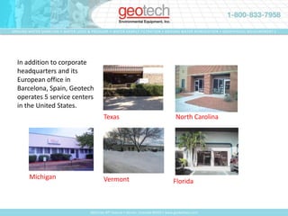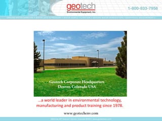 Geotech is a world leader in environmental technology and products since 1978 operating out of headquarters in Denver, Colorado and Barcelona, Spain. It has 5 service centers in the US and partners with government agencies and over 10,000 private clients worldwide. Geotech provides a wide range of passive, electric, pneumatic, and solar powered hydrocarbon recovery equipment and environmental control panels customized for client needs.