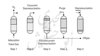 The document provides a comprehensive overview of hydrogen production and its applications in refineries, detailing key processes such as steam reforming, purification, and feed preparation. It emphasizes the importance of hydrogen for processing heavy petroleum fractions and outlines various operational parameters, equipment types, and process chemistry involved in hydrogen production. Additionally, it addresses the critical role of catalysts and compressors in enhancing efficiency and purity throughout the hydrogen generation process.