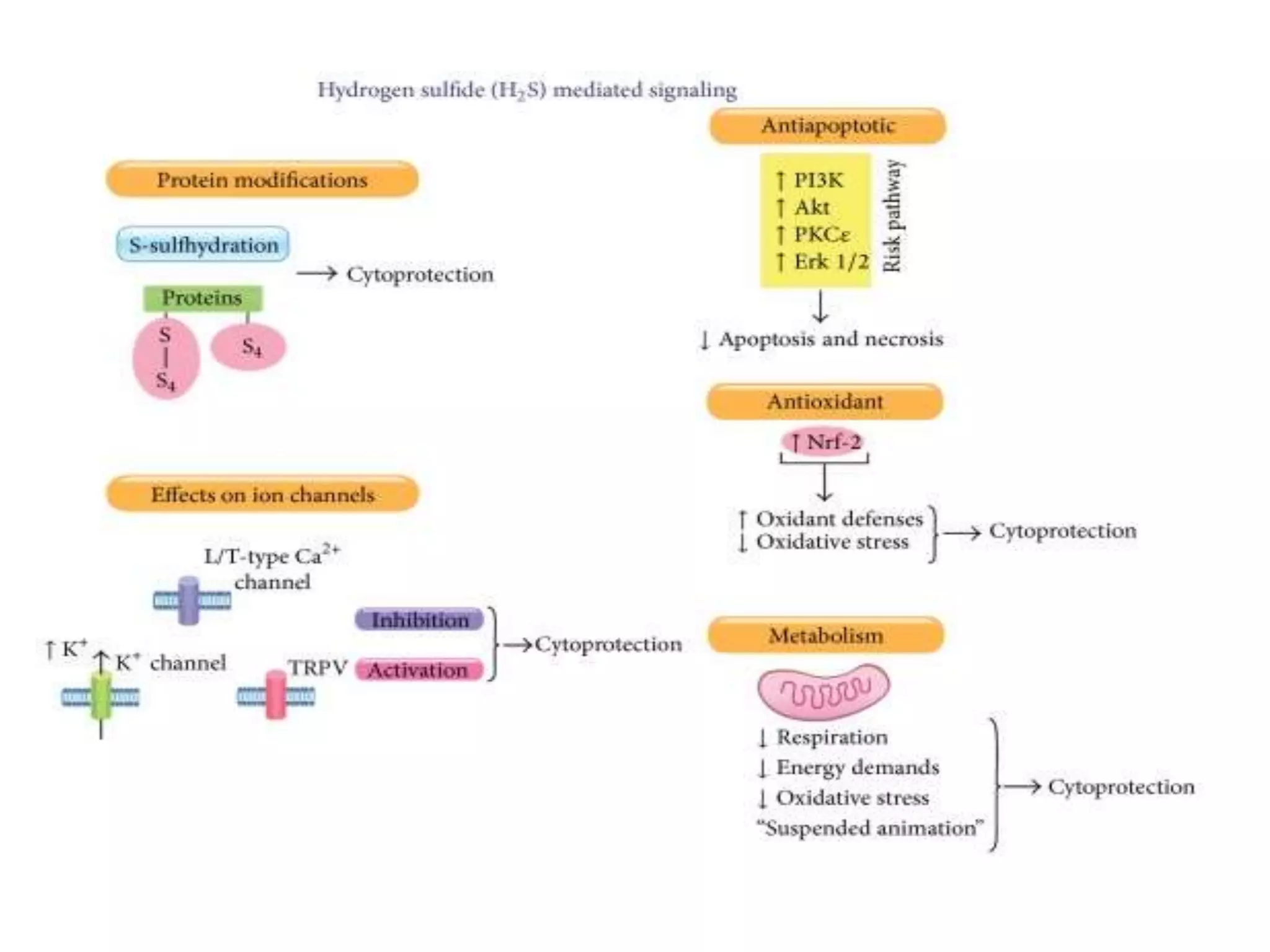 2. H2S signaling occurs through protein sulfhydration, the addition of sulfur to cysteine residues, altering protein function. This is more prevalent than nitric oxide protein nitrosylation.