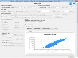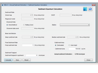 The document describes an awareness workshop on integrated water resources management applications developed under a hydrology project. It discusses the objectives and components of the Hydrological Design Aids software, including modules for water availability assessment, design flood estimation, and sedimentation rate estimation. The document provides an overview of the software architecture and features for conducting hydrological analyses and generating reports. Regional models are being developed for four river basins in India to enable computation of water availability in ungauged sub-basins.