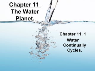 - The water cycle involves water evaporating from surfaces, transpiring from plants, condensing in clouds, and falling as precipitation to then collect and flow across the land and into oceans, only to repeat the cycle.