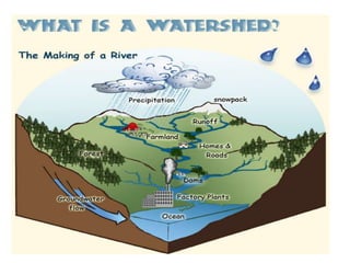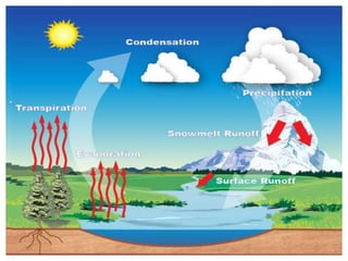 The document outlines the field of environmental hydrology, which is the study of water's distribution and movement on Earth, including its interaction with the environment. It emphasizes the importance of hydrology for understanding complex water systems and addressing water-related challenges faced by society. Practical applications of environmental hydrology include water resource management, pollution control, and flood mitigation.